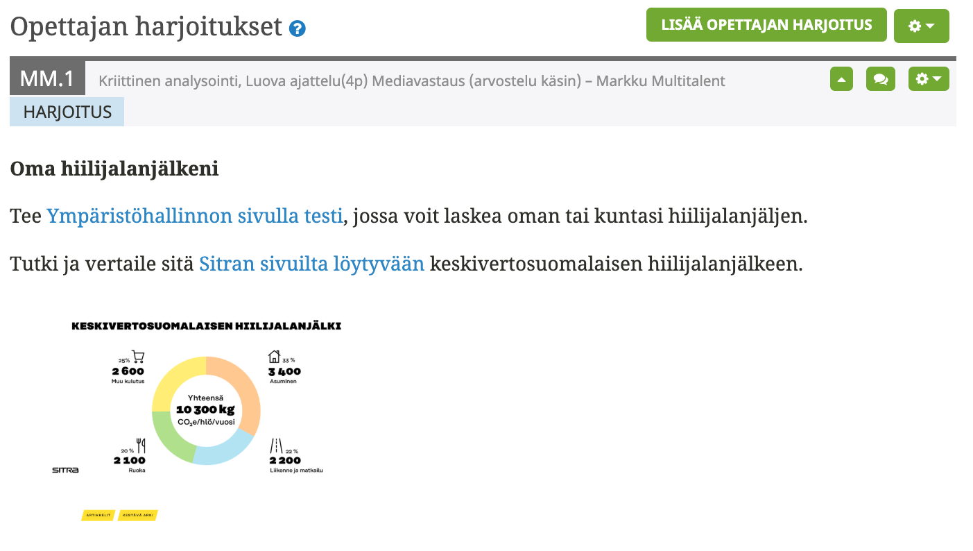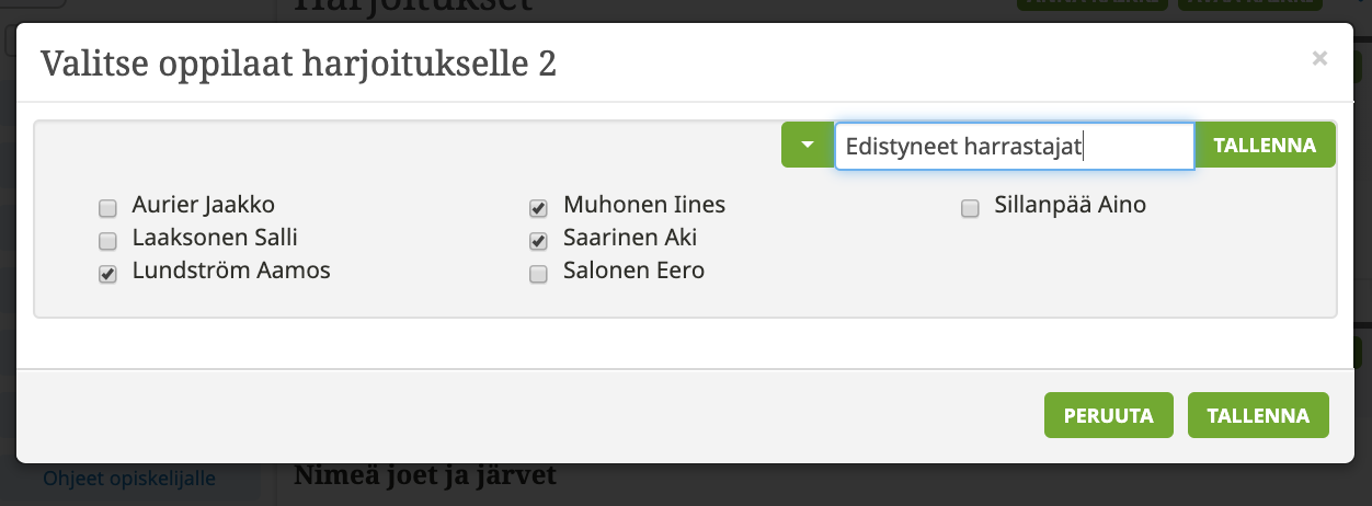 Harjoituksia voi antaa joko kaikille tai yksittäisille opiskelijoille.