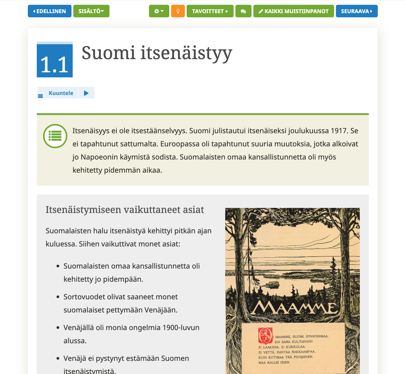 ammattitaitoisesti tuotettua sähköistä oppimateriaalia alakoulusta lukioon.