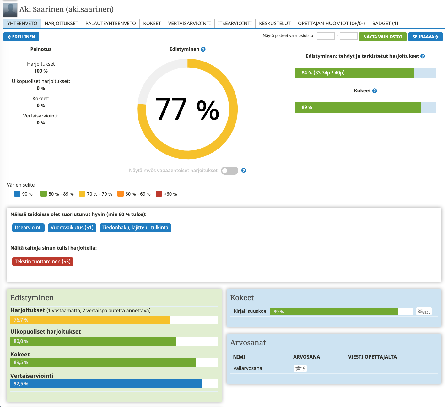 Kaikki arviointitieto on nähtävissä yhdellä sivulla. Studeo…
