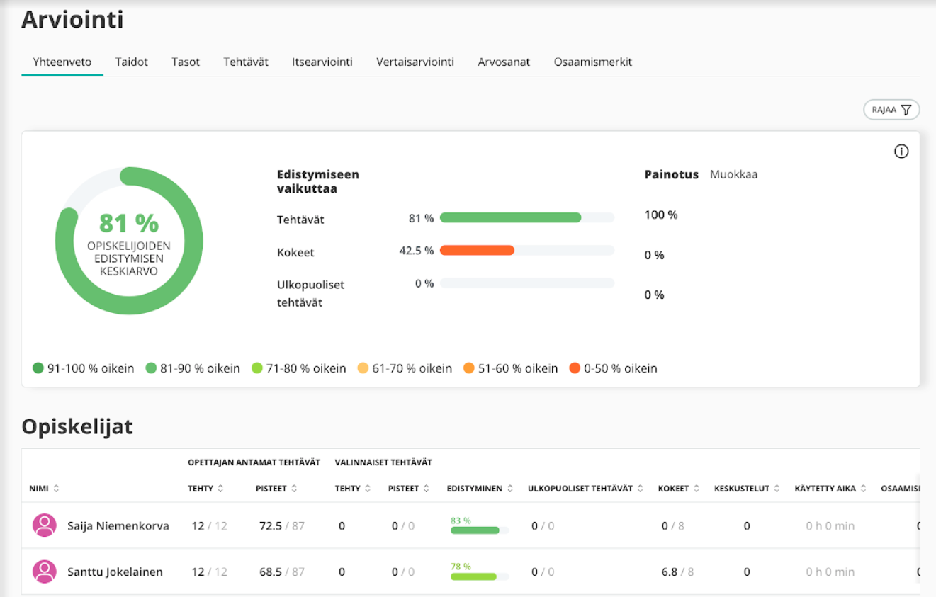 Seuraa opiskelijoiden edistymistä yhdestä näkymästä