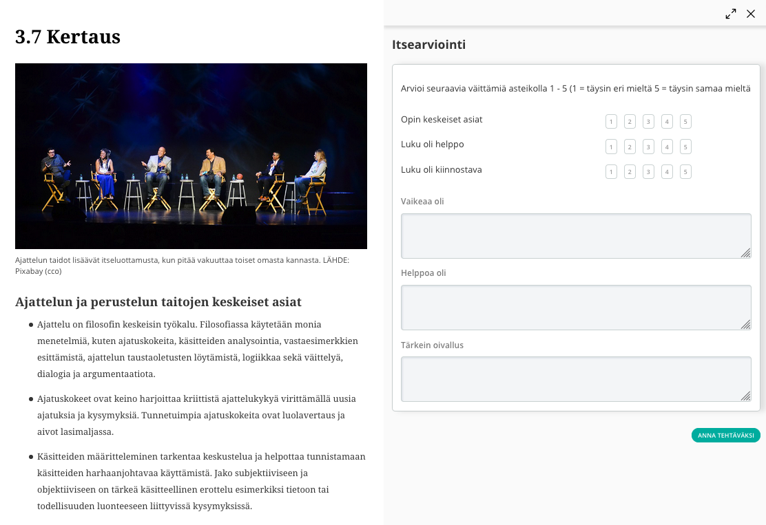 • Kriittiseen ajatteluun ja perustelemiseen tarjotaan työkaluja.
