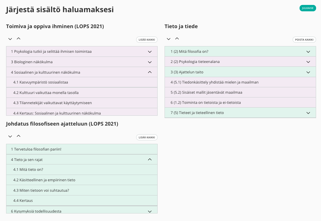• Voit yhdistää moduuleja opintojaksoiksi.