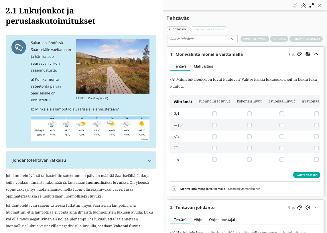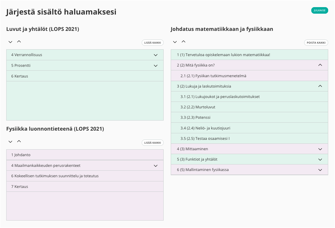 • Voit lisätä materiaaliin omia sisältöjäsi ja laatia lisää harjoituksia.