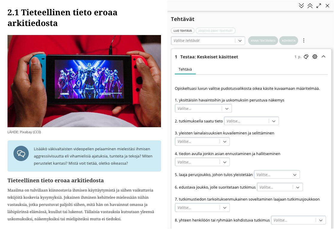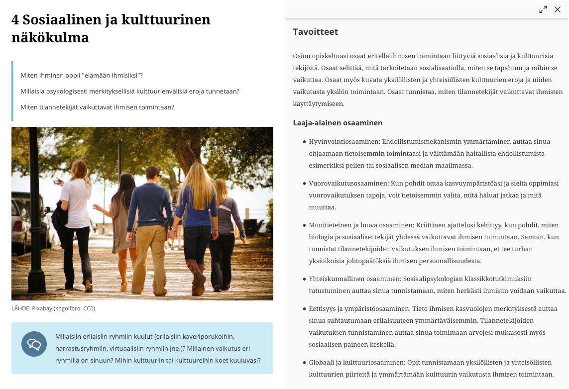 • Opiskelu materiaalin avulla on tavoitteellista ja kiinnostavaa.