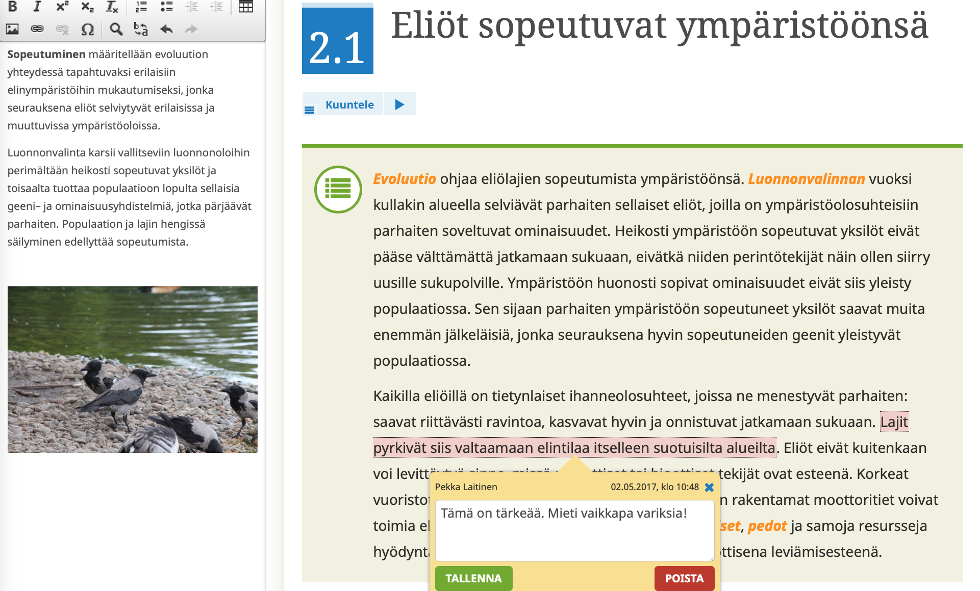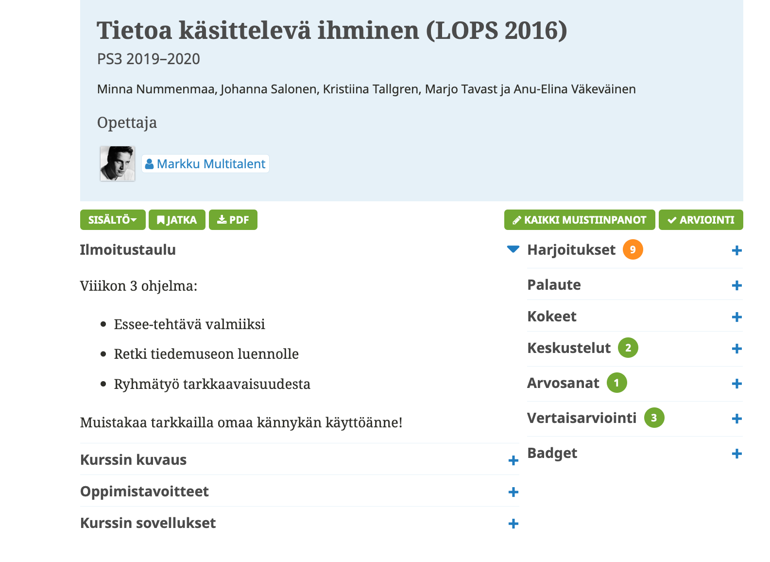 Harjoitukset ja niistä saatava palaute, muistio ja mahdollisuus tehdä sisältöihin merkintöjä aktivoivat opiskelijaa.