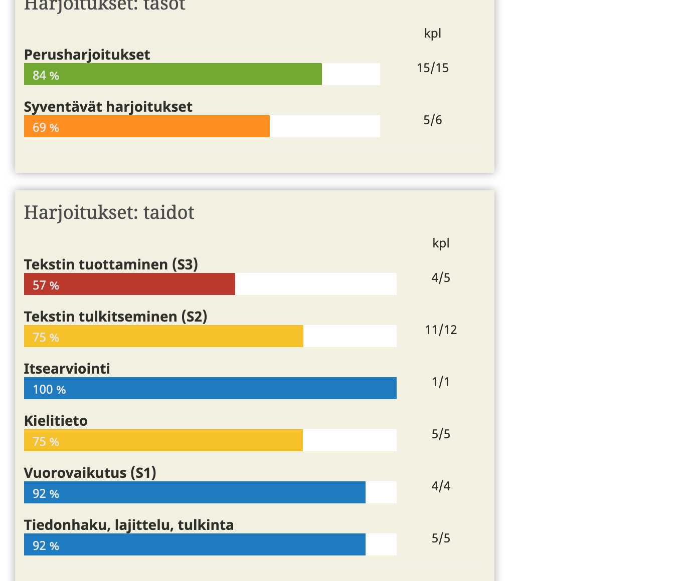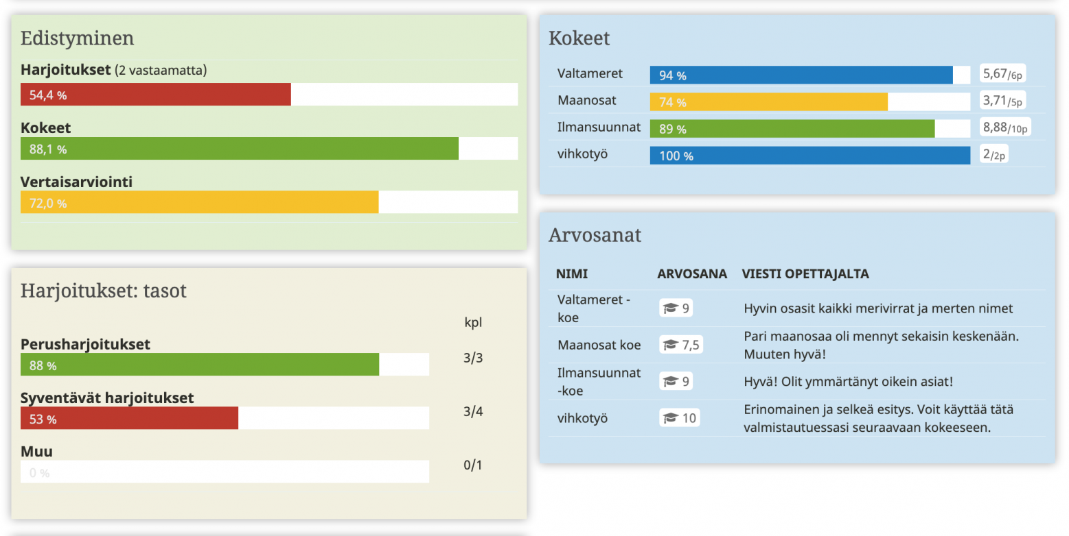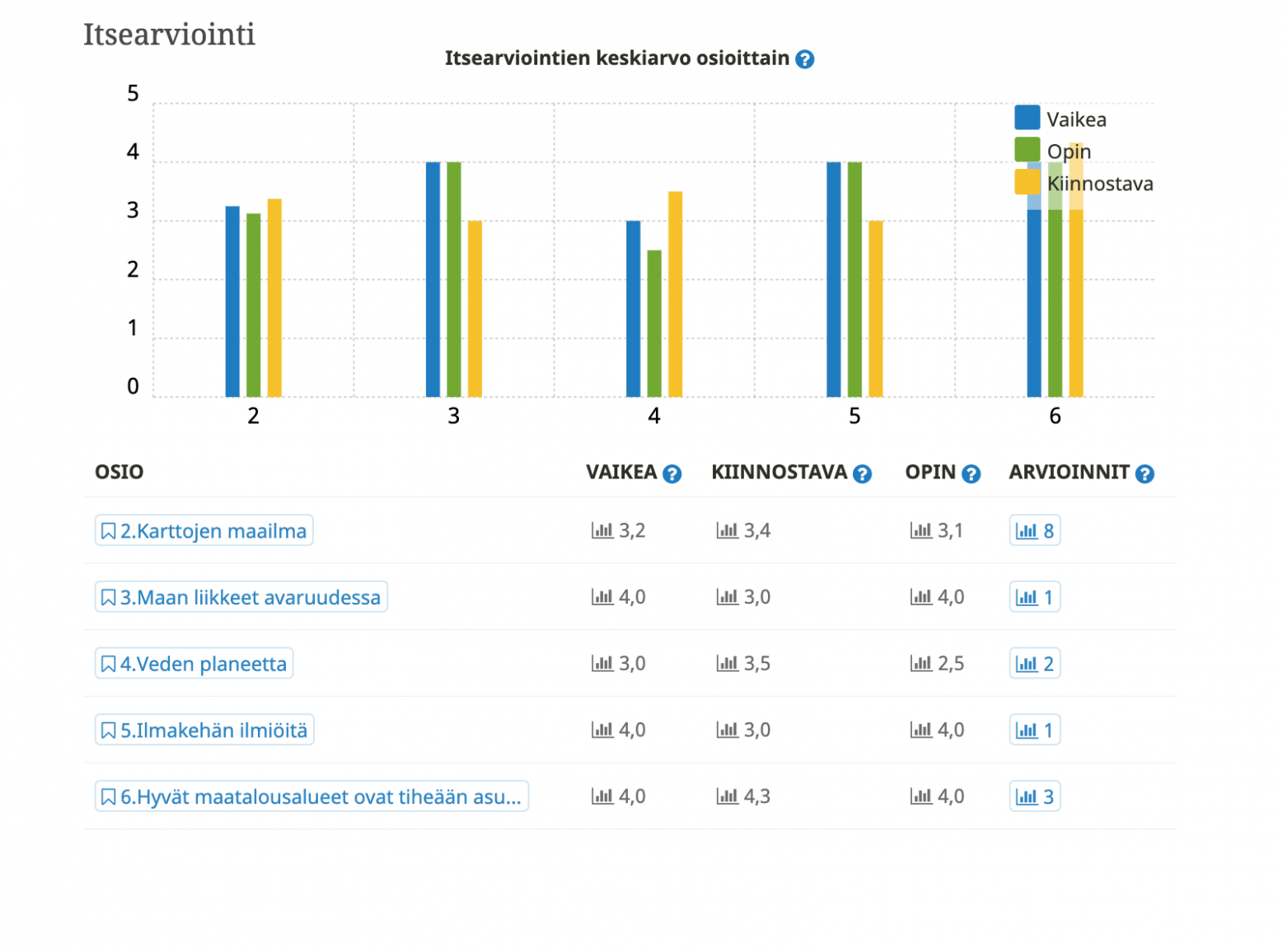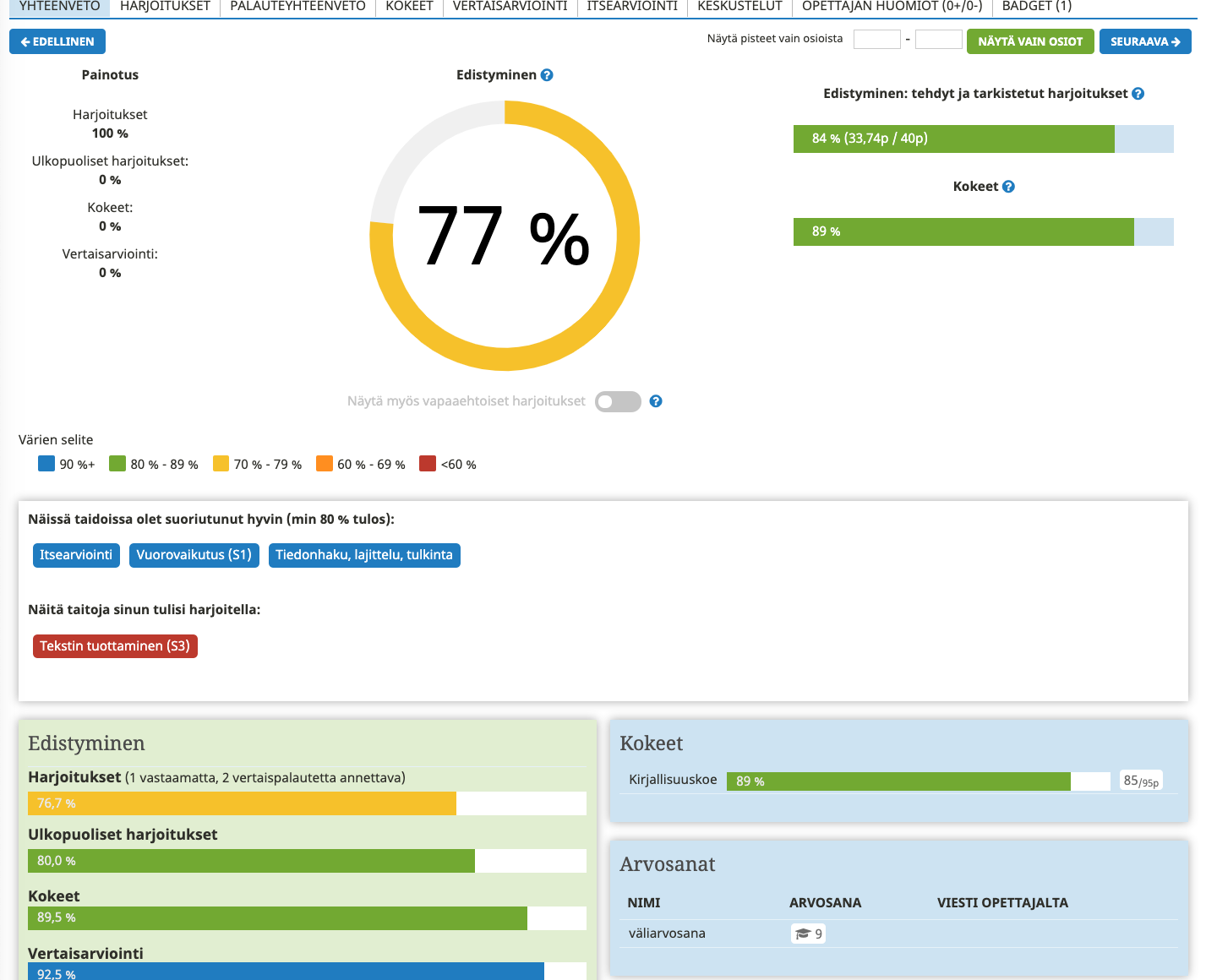 Kaikki arviointitieto on nähtävissä yhdellä sivulla.