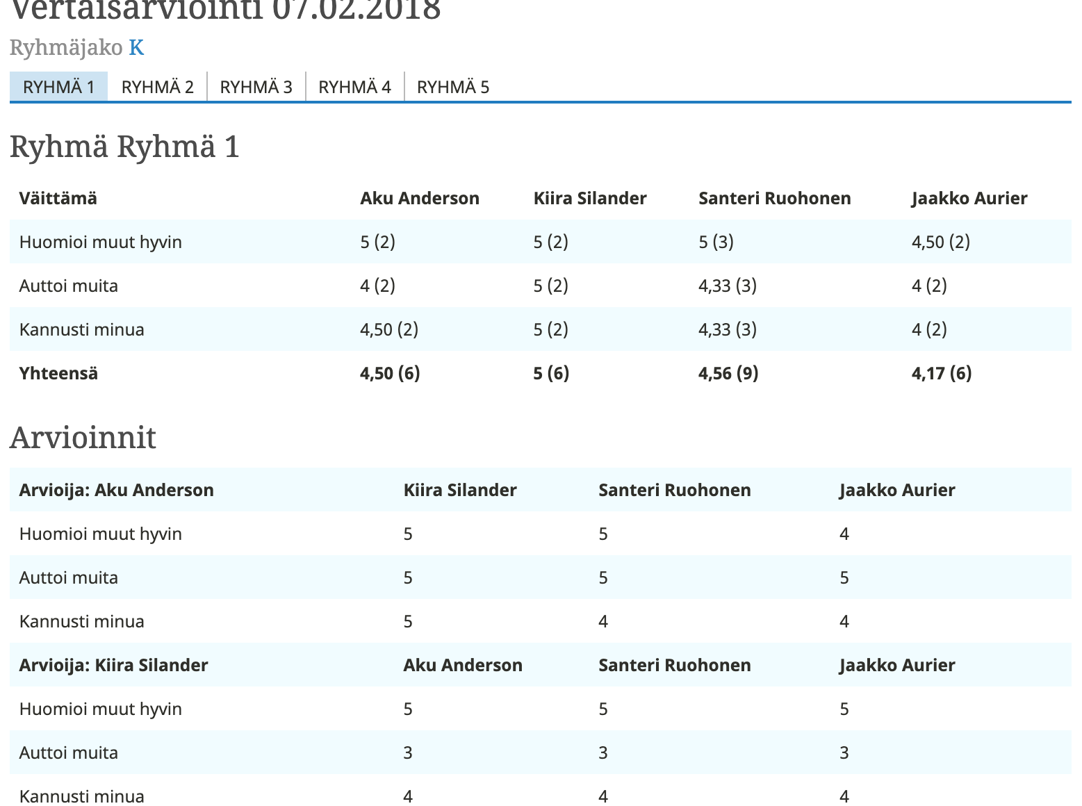 Vertais- ja itsearviointia on helppo toteuttaa.