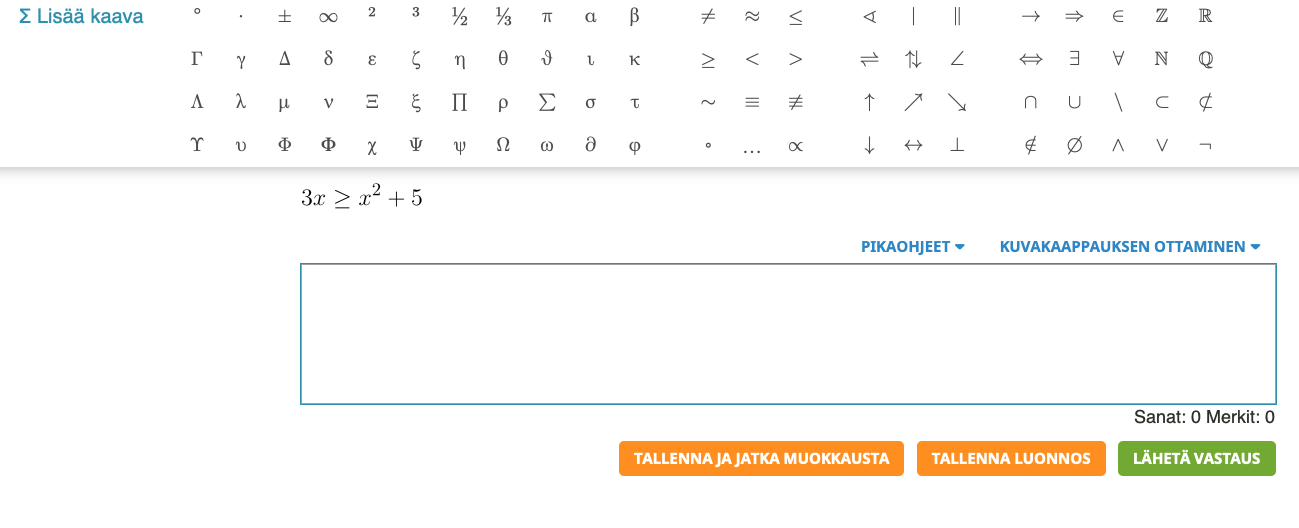 Studeo tarjoaa mahdollisuuden harjoitella myös ajankohtaisia ja opiskelijalle tärkeitä sovelluksia, kuten ylioppilaskokeessa käytettävää matematiikkaeditoria.