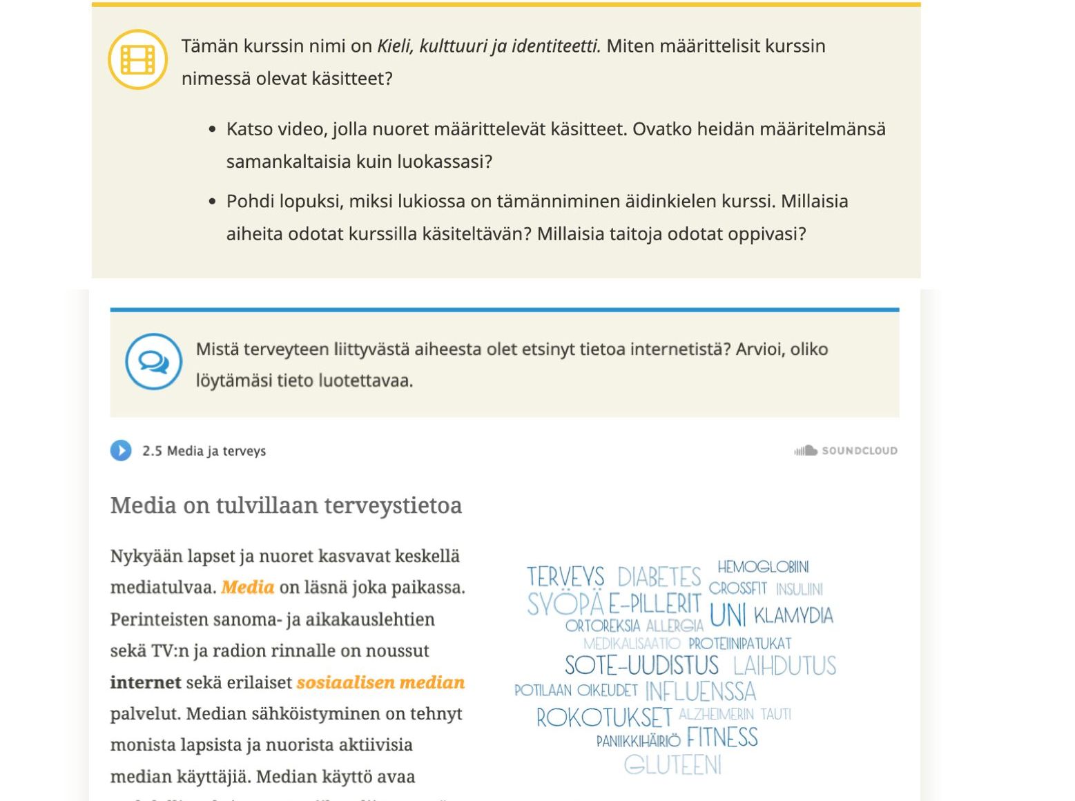 Oppimateriaalit aktivoivat tutkimaan asioita useista eri lähteistä. Näin myös monilukutaito kehittyy.